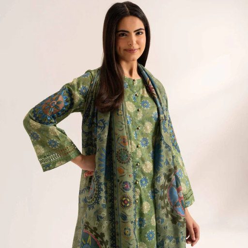 - Set: Complete 2-piece unstitched ensemble in a refreshing green palette.